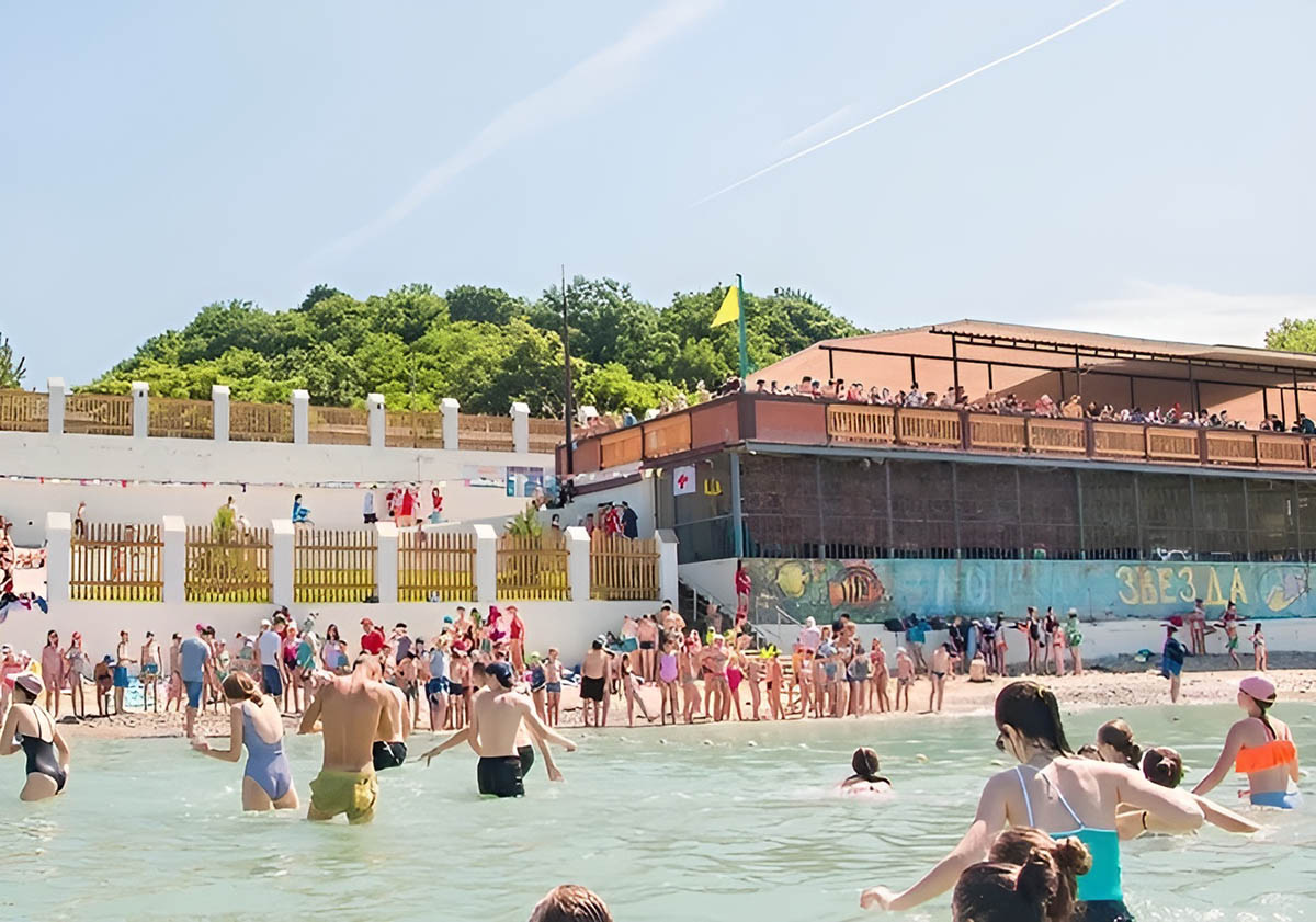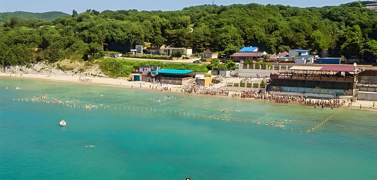 Собственный песчаный пляж в 50 метрах от нижнего КПП. Пляж оборудован: душевыми, раздевалками, лежаками, навесами, медицинским и спасательным пунктами. Проход на пляж осуществляется по оборудованному подземному переходу.